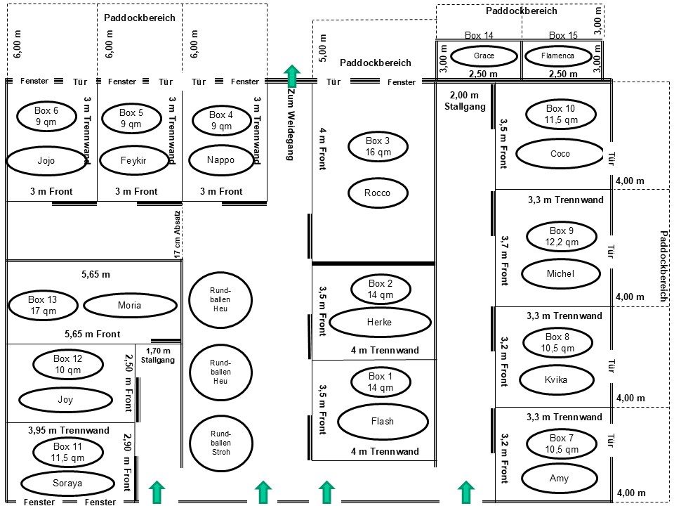 Lage der Boxen siehe Stallbelegung weiter unten.